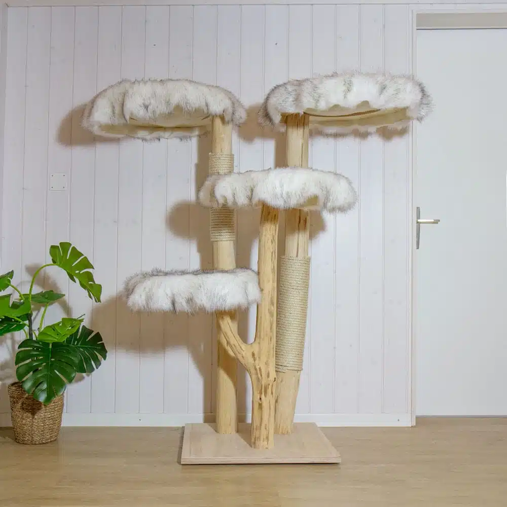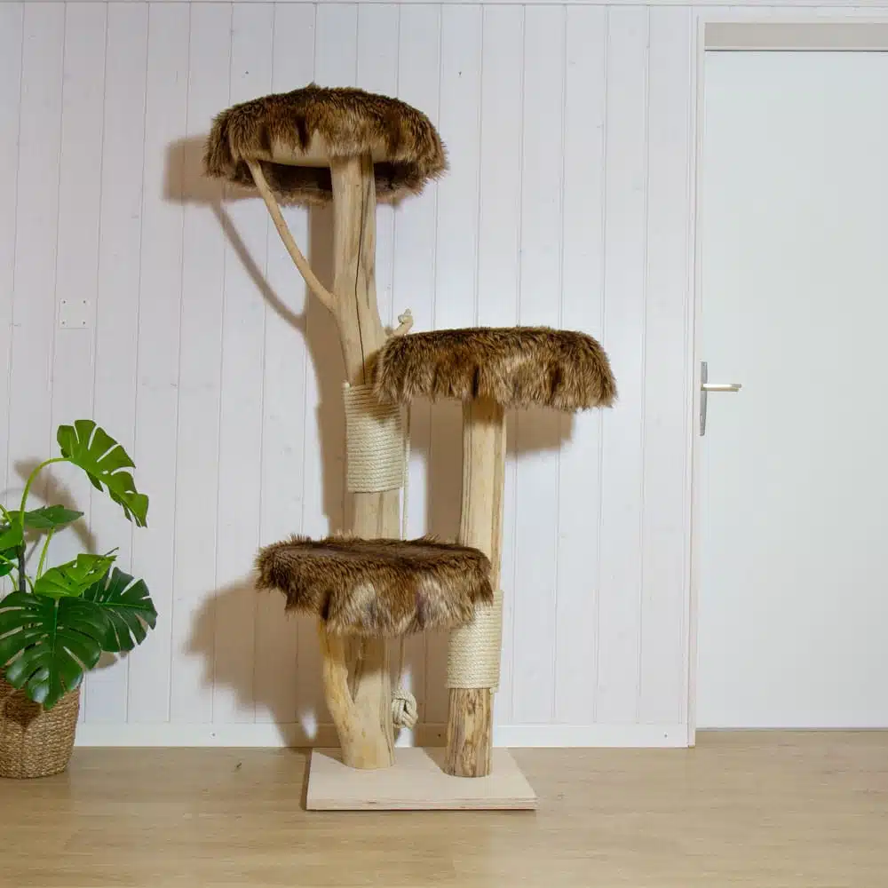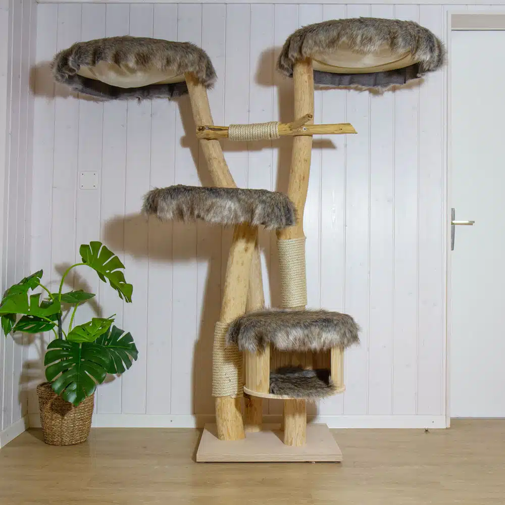 Unsere KratzbĂ€ume bestehen aus einem einzigartigen Material, das Katzen bereits seit Jahrhunderten bevorzugen. Wir verwenden echtes Holz von lokalen BĂ€umen, robustes und natĂŒrlich gewachsenes Massivholz in seiner reinsten Form.